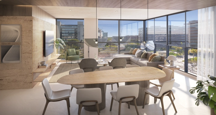 Memorial de Incorporação R-11, matrícula 131.475. Registrado no cartório 2º Ofício de Imóveis do DF. As imagens são meramente ilustrativas e podem não representar as características reais dos materiais. As unidades serão entregues conforme memorial de incorporação (R-3, Matrícula 171.177) registrado em cartório. As áreas comuns serão entregues mobiliadas e decoradas conforme valor e itens relacionados no contrato de promessa de compra e venda. O paisagismo será entregue com plantas de pequeno porte, que poderão refletir as características das imagens, dependendo dos cuidados e manutenção.